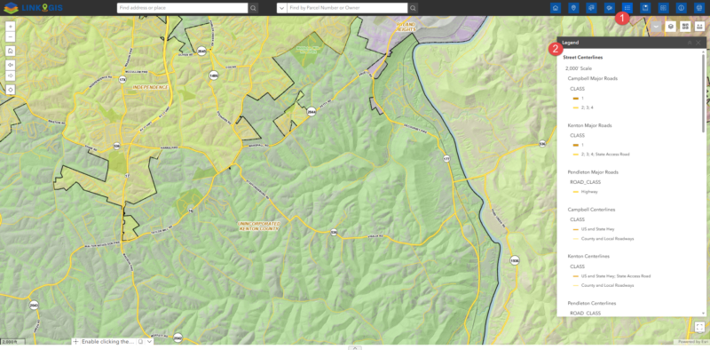 This widget draws the legends for any non-basemaps layers currently displayed in the LINK-GIS map viewer. This widget will update as the zoom level changes or data layers are turned on or off.