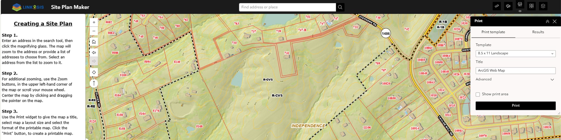 Experience the NEW LINK-GIS map viewer, utilizing the latest mapping application technology. The sleek new design allows users to easily search addresses, PIDNs and Owner Names, find property information and print beautiful maps. There are numerous layers to view, including zoning, flood zones, voting precincts, and more. Users still have the options to customize their maps and export to PDF, or simply print their maps.